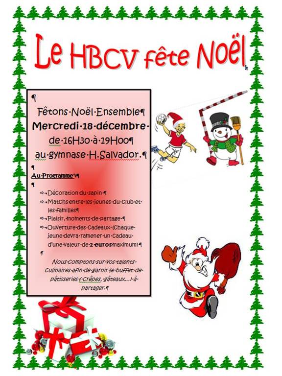 Notez le. Le 18 décembre 2013 à 16h30, venez fêter Noël avec le HBCV.