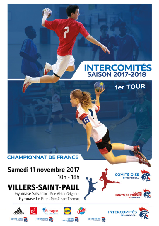 Les intercomités des Hauts-de-France auront lieu le samedi 11 novembre 2017 de 10h & 18h à Villers St Paul. Il s'agit des meilleurs espoirs de -15 ans des chacun des 5 départements de la région. Les jeunes filles joueront au gymnase Lepite, rue Albert Thomas tandis que les garçons occuperont le gymnase Henri Salvador rue Victor Grignard..