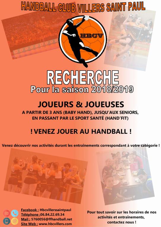 Le HandBall Club de Villers-Saint-Paul sera heureux d'accueillir de nouveaux licenciés. Que vous soyez joueurs ou entraineurs, débutants ou expérimentés, nous avons besoins de vous !