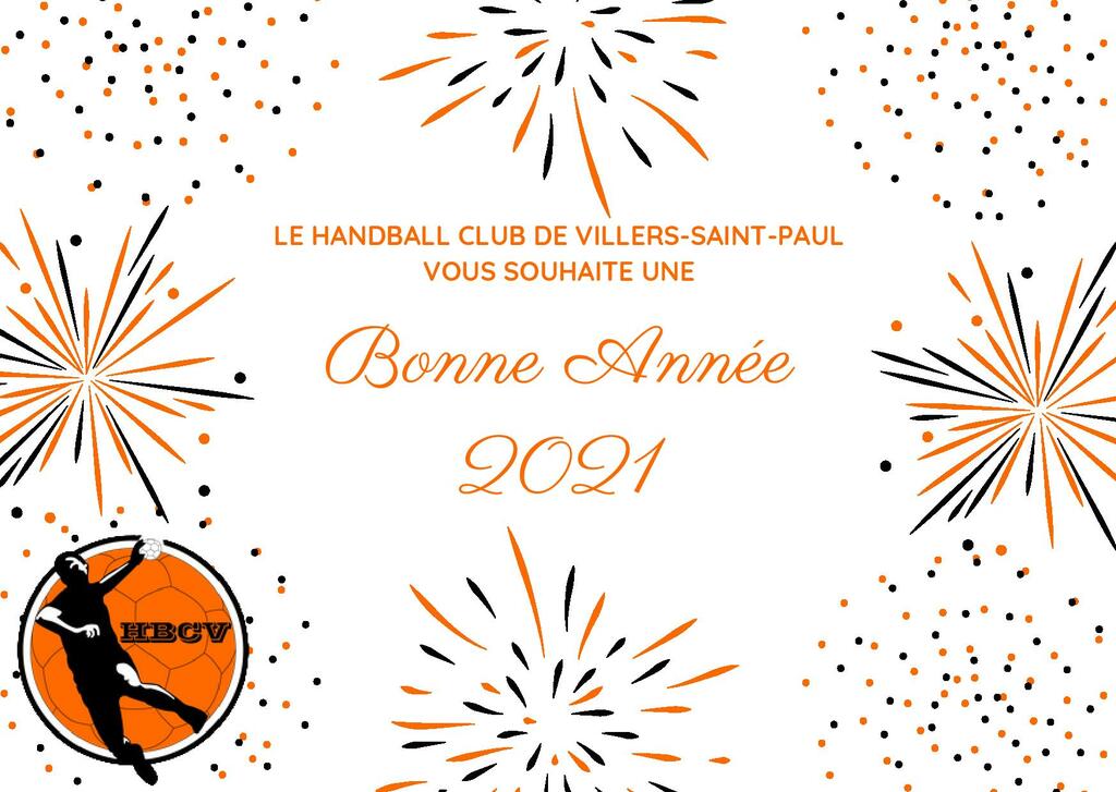 Le Conseil Collégial du HandBall Club de Villers-Saint-Paul vous adresse ses meilleurs voeux pour la nouvelle année. Nous espérons que 2021 sera l'année du retour définitif du handball, sur le terrain, comme en tribune ! Nous vous souhaitons chaleureusement une très belle et heureuse année 2021. A très vite !